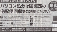 小型家電リサイクル法が出来て3年、この町でもクリーンセンターへの廃棄持ち込みが出来るようになっていますが、今月新聞広告のあったリサイクル会社へネットで依頼してみました。